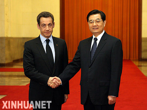 11月26日,国家主席胡锦涛在北京人民大会堂北大厅举行仪式,欢迎法国总统萨科齐访华。 新华社记者饶爱民摄