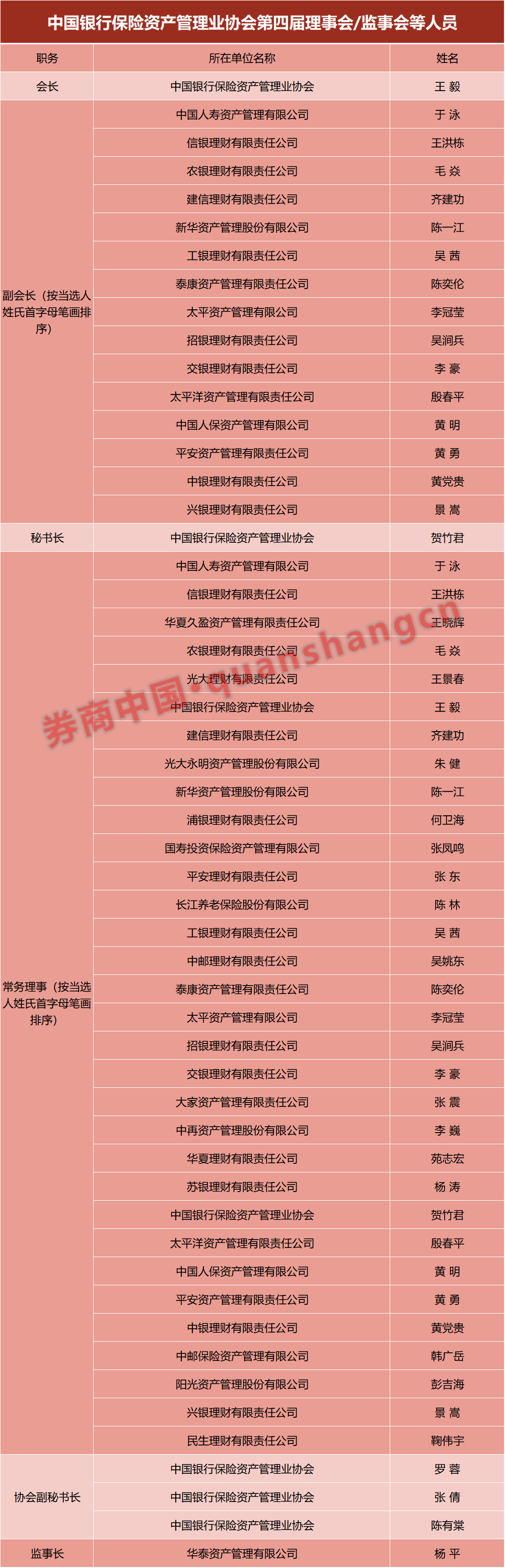 会议投票选举产生了协会第四届理事会理事,第四届常务理事、会长、副会长、秘书长,第四届监事会监事、监事长。王毅当选为协会第四届理事会会长。华泰资产管理有限公司当选为协会第四届监事长单位。